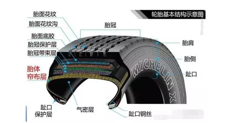 轮胎按照结构设计分类划分为斜交线轮胎、子午线轮胎。子午线胎与斜交线胎的根本区别在于胎体。斜交线胎的胎体是斜线交叉的帘布层;而子午线胎的胎体是聚合物多层交叉材质,其顶层是数层由钢丝编成的钢带帘布,可减少轮胎被异物刺破的几率。