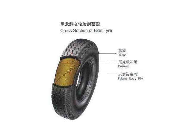 与子午线轮胎相比,斜交线轮胎虽然不具备弹性好、散热快等优点,却具有胎侧厚、侧向强度高等优点。较厚的胎侧可以充分抵抗路缘、石快等锐利物的刮蹭,不易漏气保证车辆正常运输功能。侧向强度高能够在一定程度上减少车辆在恶劣路况下的左摇右摆提高驾驶员的乘坐舒适性。